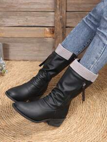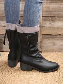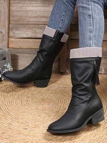 Goth Plus Size 2023 New Arrival European And American Style High Boots With Woolen Edge, Women's Boots With Round Toe And Side Zipper