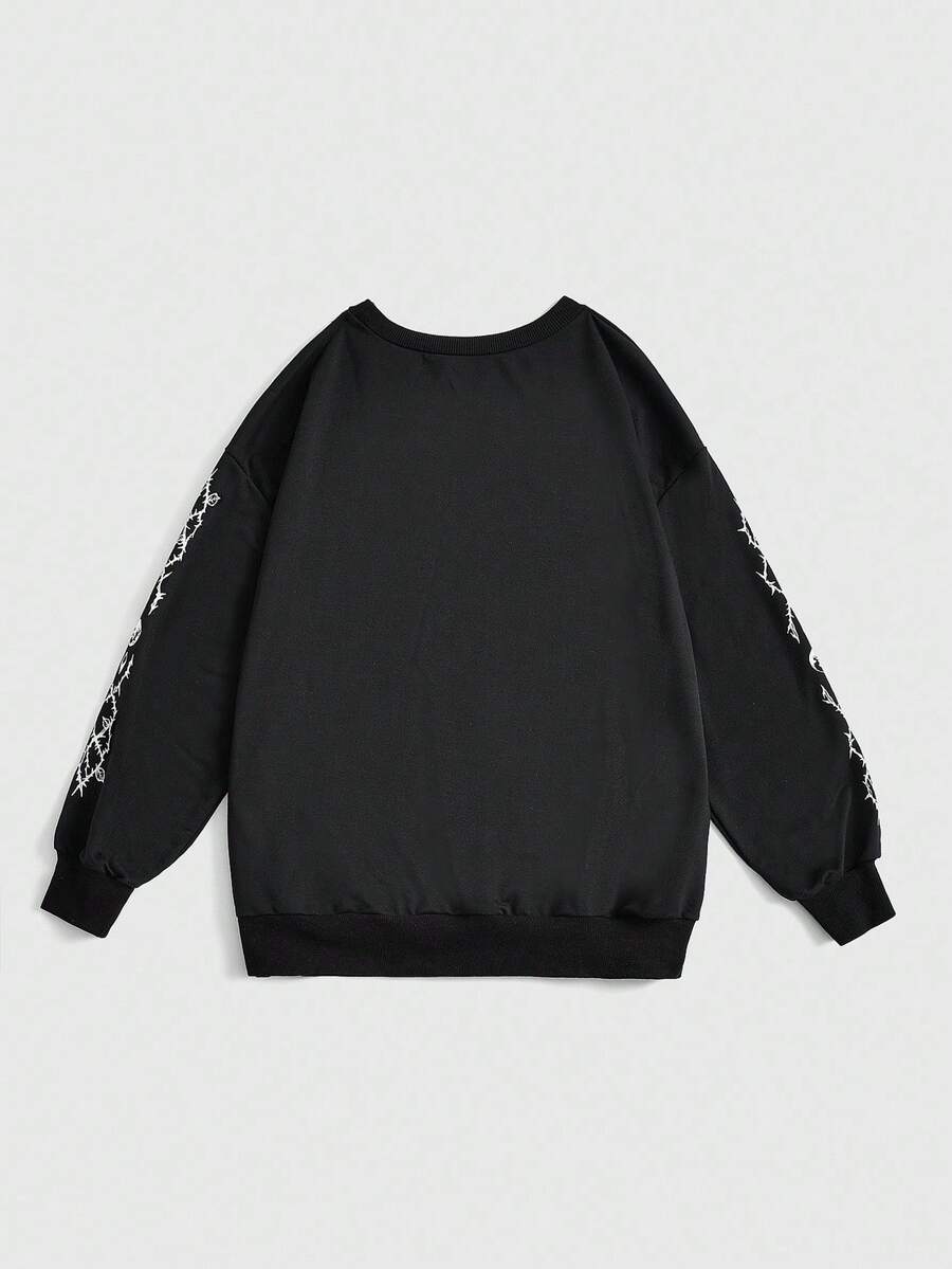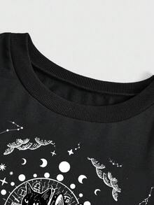 Goth Plus Size Dark Sun, Moon, Star & Zodiac Cat Print Long Sleeve Hoodie Sweatshirt