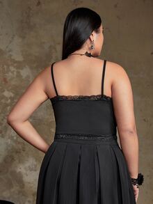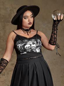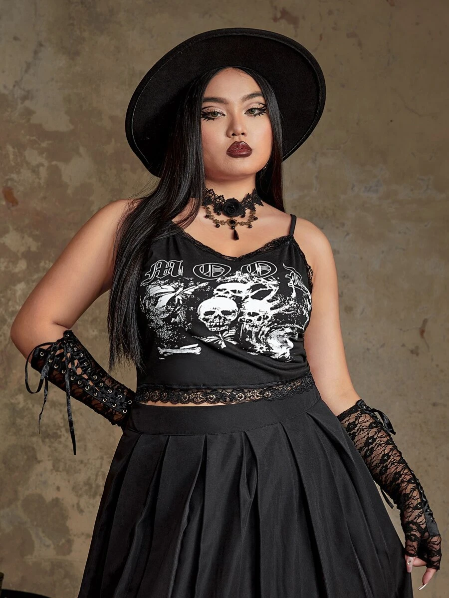 Goth Plus Skull Graphic Lace Trim Cami Top