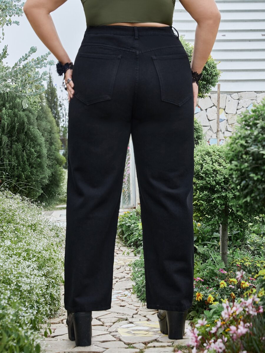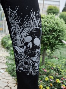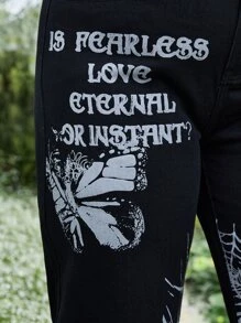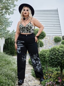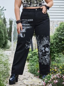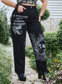 Goth Plus Skull & Slogan Graphic Straight Leg Jeans