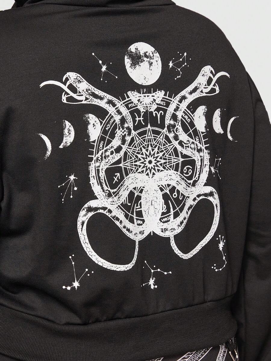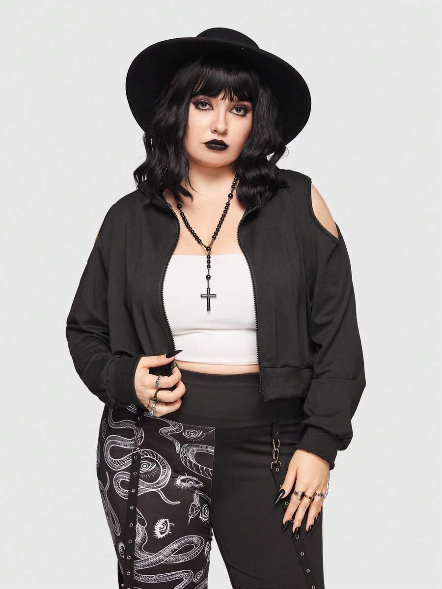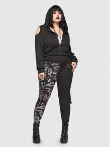 Goth Plus Snake Print Cut Out Shoulder Hoodie
