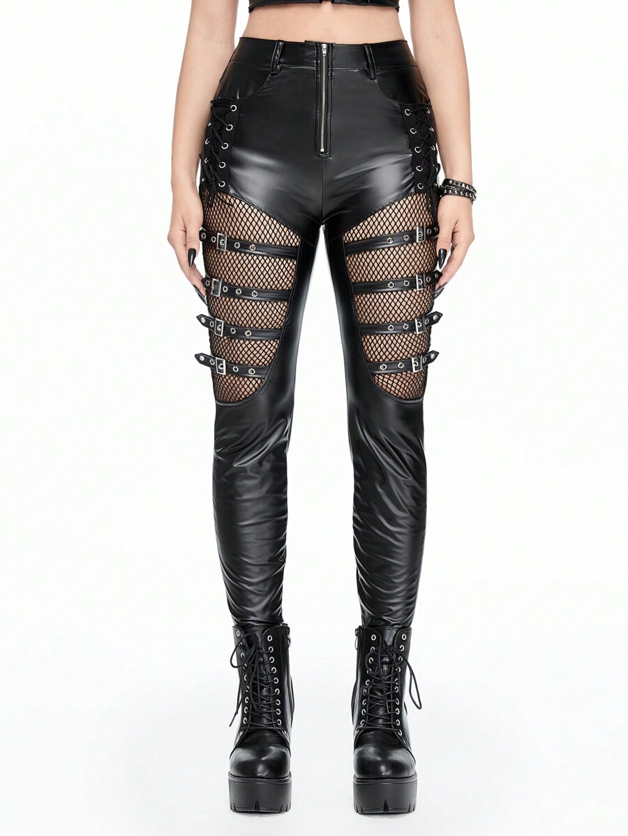 Goth Power Mesh Insert Cut-Out Leggings With Firm Control