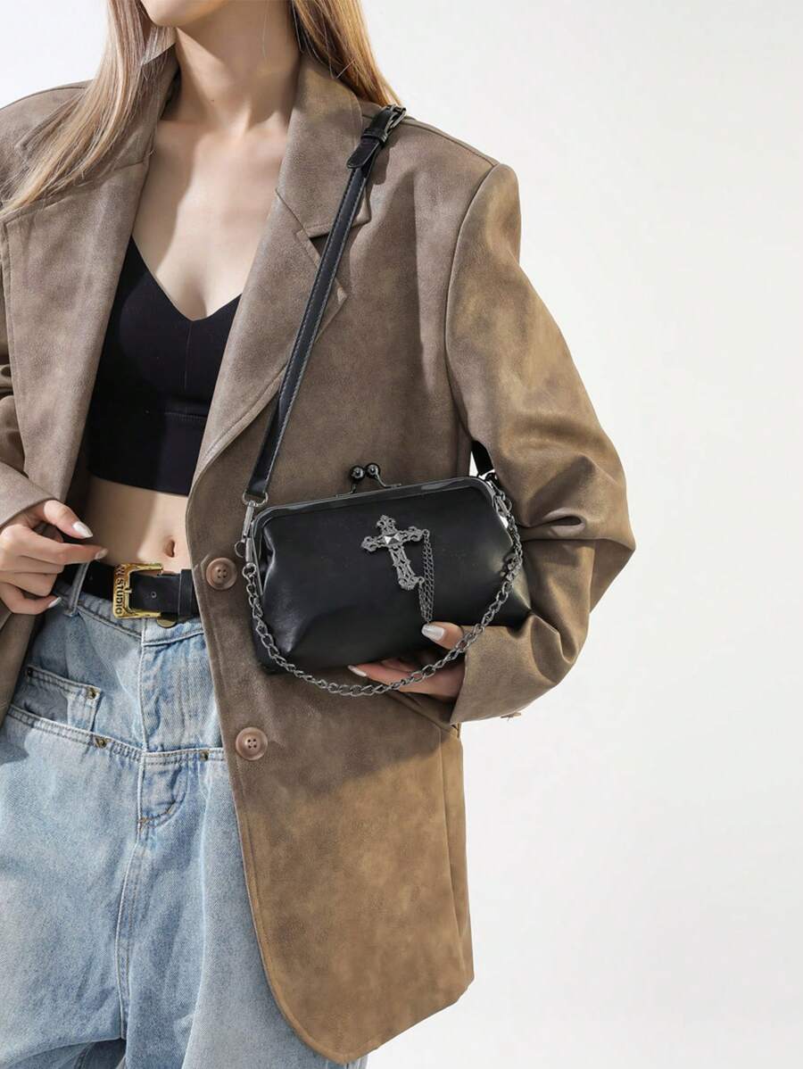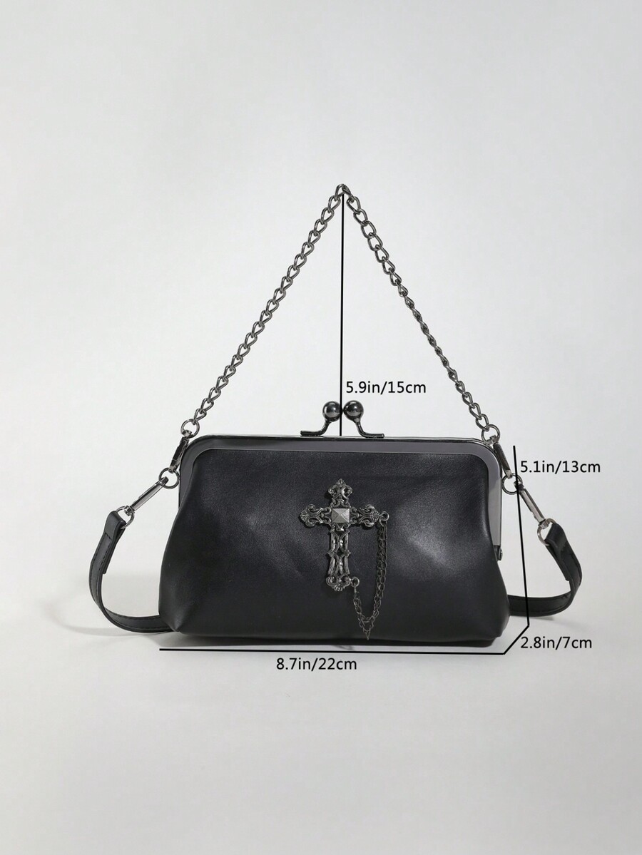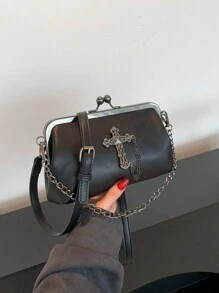 Goth Punk Style Chain Trimmed Skull Detail Clutch/Shoulder/Crossbody Bag