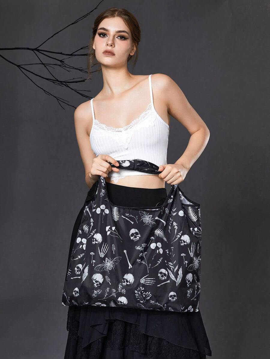 Goth Saudi Taboo Cartoon Skull Portable Tote Bag With Waterproof & Scratch Resistant Function For Women Sku 298147