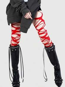 Goth Sexy Lady Ripped Fishnet Black Tights