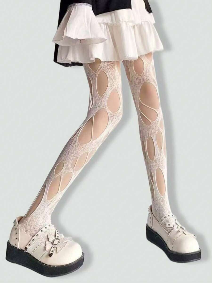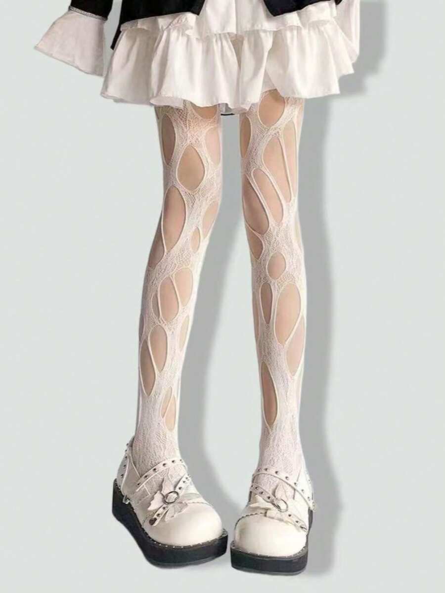 Goth Sexy Ripped Tights, Suitable For Pairing With Mini Skirts