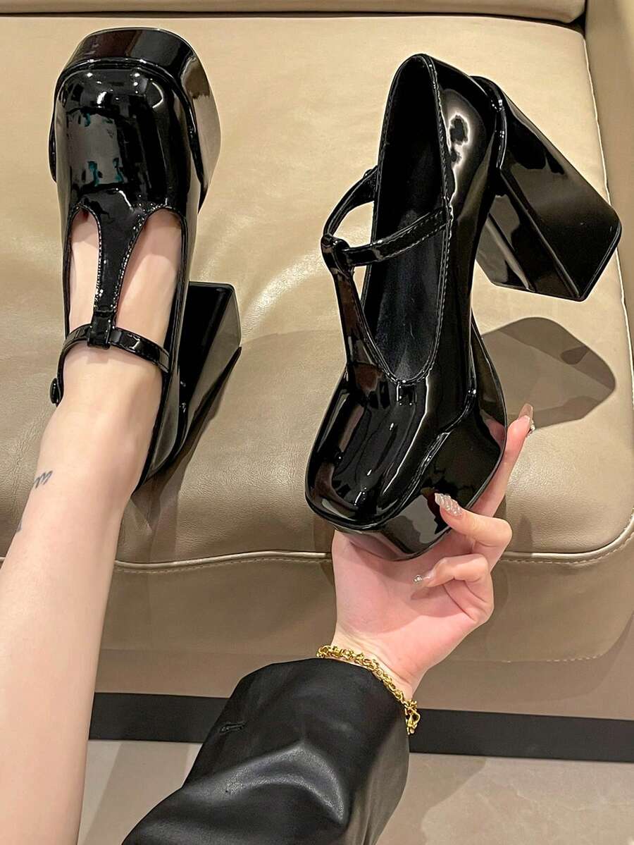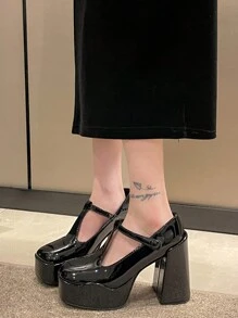 Goth Sexy T-Strap Super High Block Heel Waterproof Platform High Heels