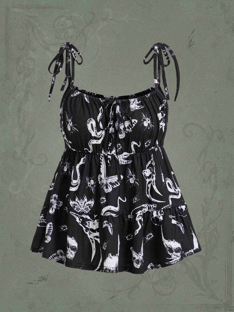 Goth Snake Print Ruched Bust Tie Shoulder Cami Top