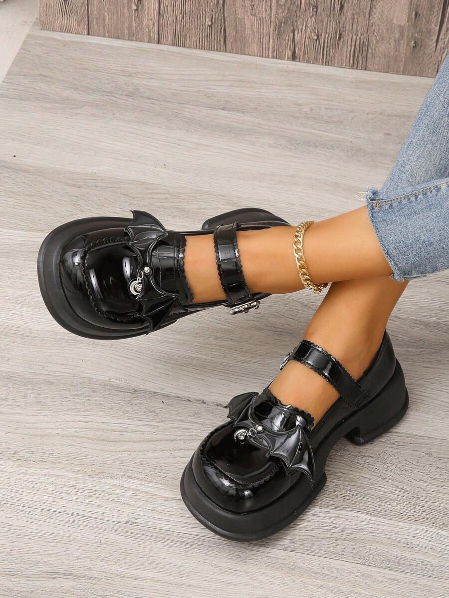 Goth Women Bat Decor Flatform Mary Jane Shoes, Funky Outdoor Shoes
