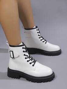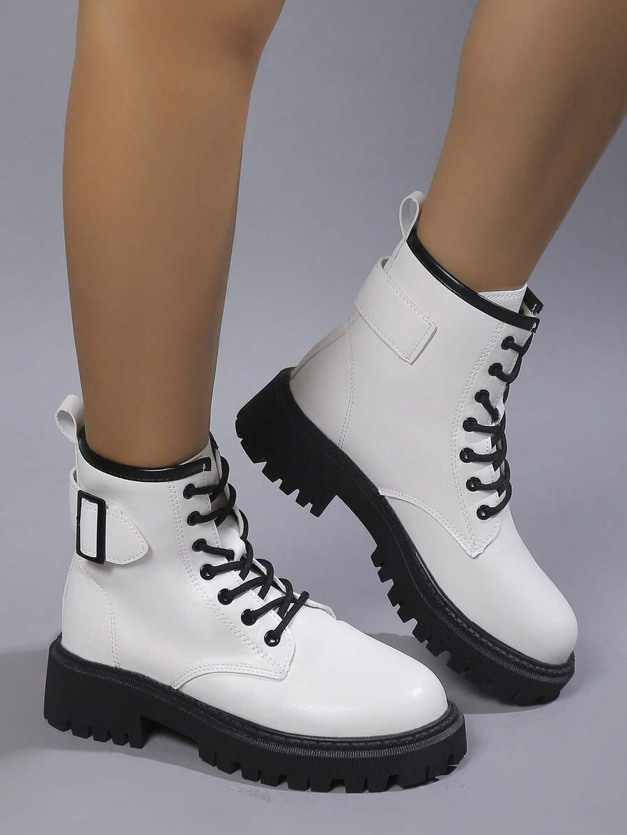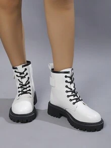 Goth Women Lace-up Front Combat Boots, Punk Outdoor Fashion Boots