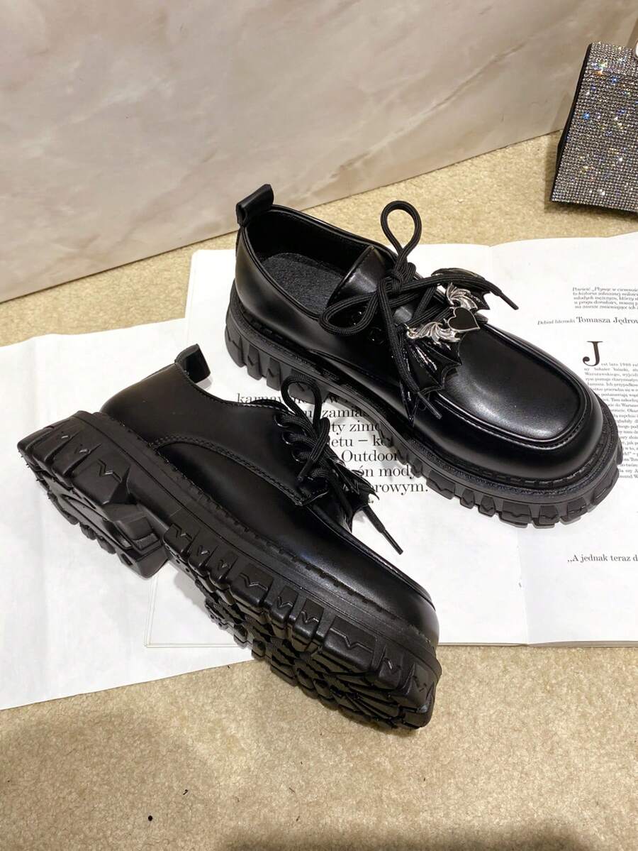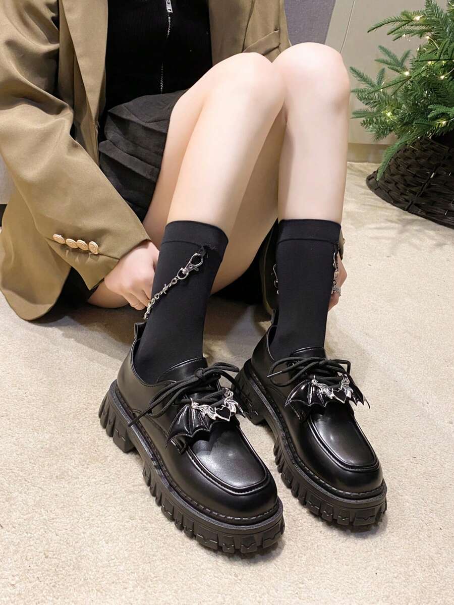 Goth Women'S Platform Shoes With Removable Bat Wing And Metallic Accents
