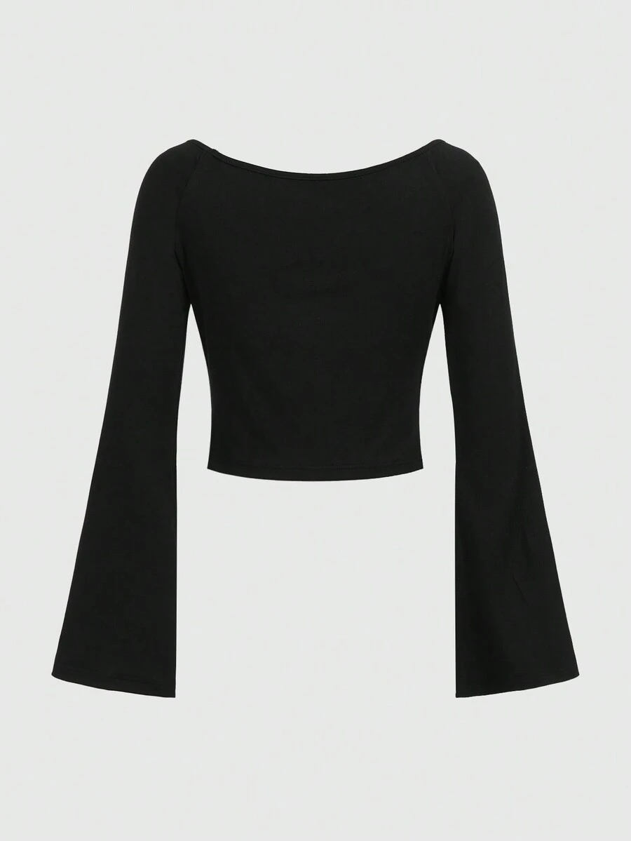 Goth Women's Cross & Flower Printed Bell Sleeve T-shirt
