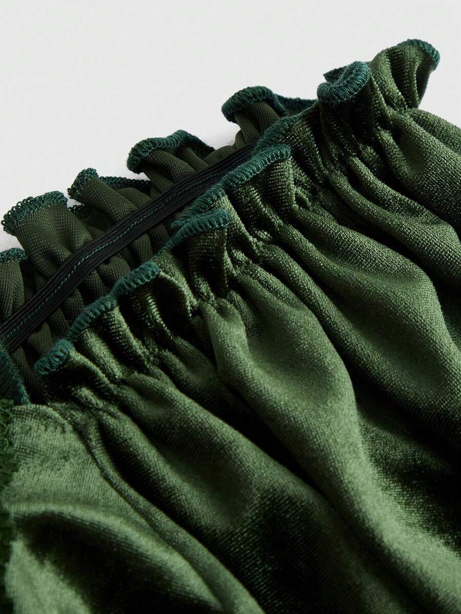 Goth Women's Dark Green Puff sleeve Shirt With Large Round Neck And Open Back Design