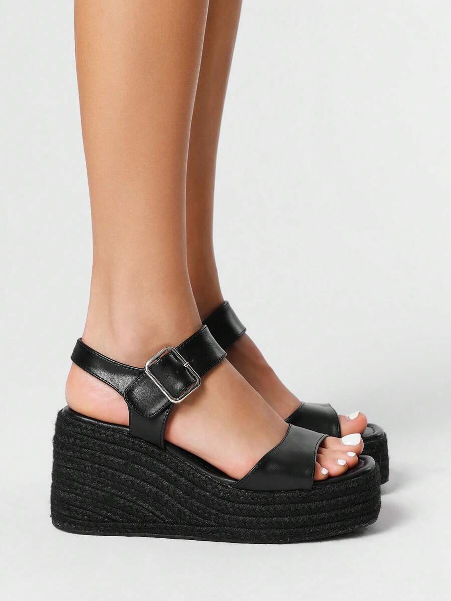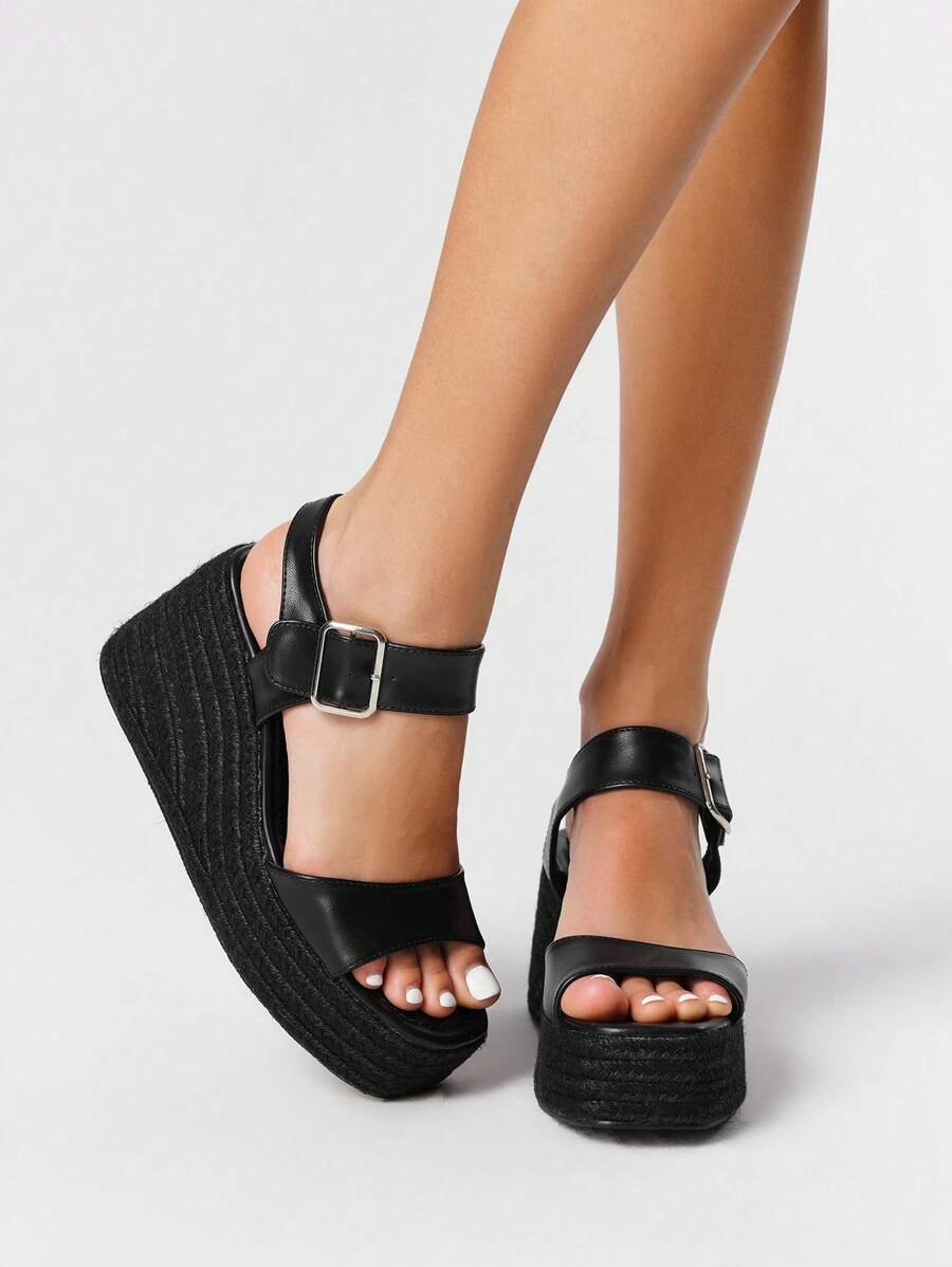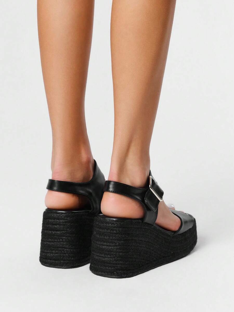 Goth Women's Fashion Punk Platform Thick Bottom Black Sandals, Summer Roman Strap Waterproof High Heel Metal Buckle Chunky Toe-Exposed High Heels