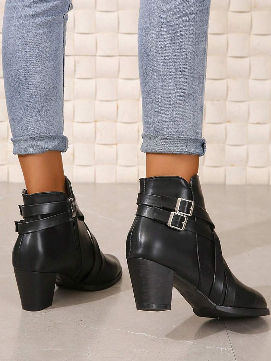 Goth Women's Fashionable Short Boots With Cross Straps And Chunky High Heels
