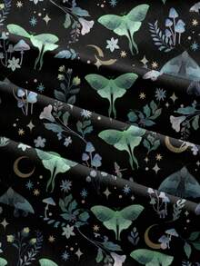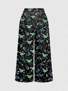 Women's Gothic Dark Mysterious Witch Moth Leaf Plant Butterfly Snake Sun Moon Star Allover Print Loose Wide Leg Pants
