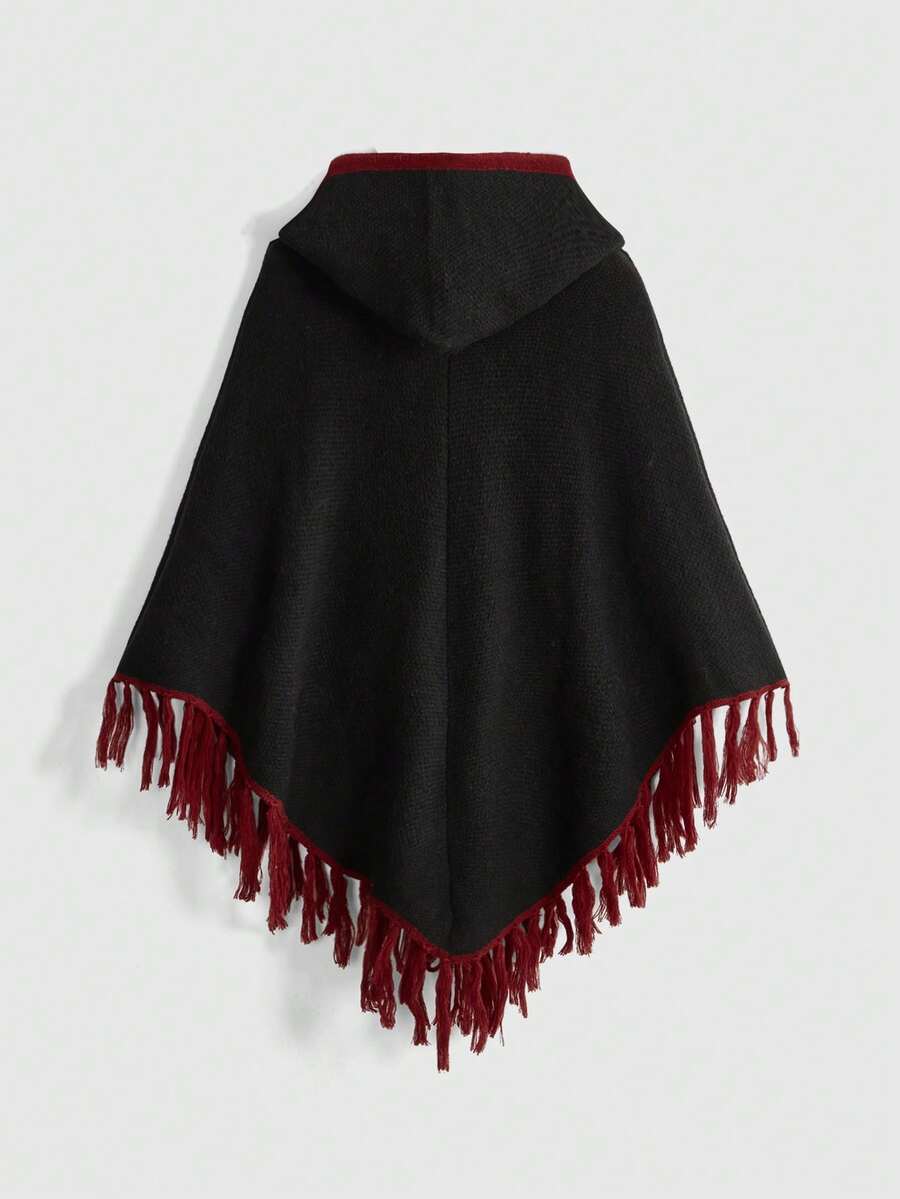 Goth Women's Mysterious Witch Style Moon & Star Embroidery Contrast Color Jacquard Batwing Sleeve Tassel Hem Hooded Cardigan