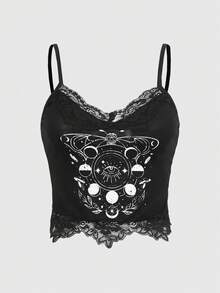 Goth Women's Pattern Printed Lace Trim Camisole
