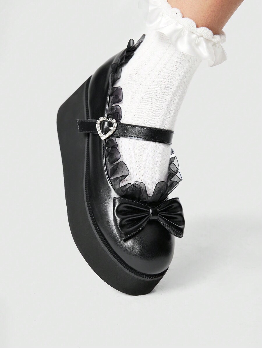 Goth Women's Platform & Chunky Heel Shoes, Punk Style Black Round Toe Thick Bottom Buckle Strap High Heels