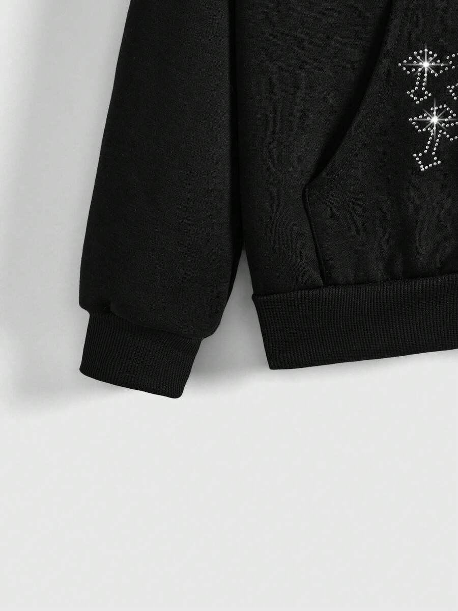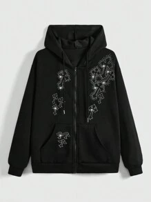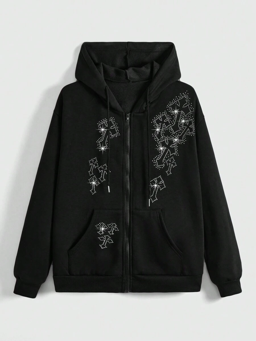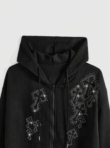 Goth Women's Rhinestone And Cross Graphic Zipper Front Hoodie