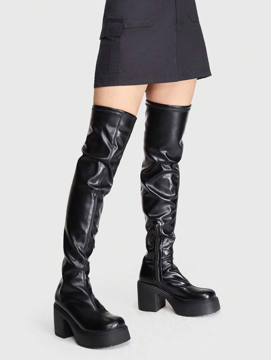 Goth Women's Simple Black Over-the-knee High Heel Boots