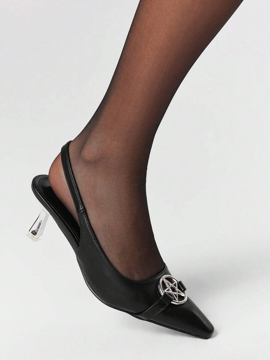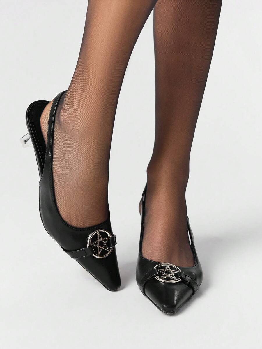 Goth Women's Square Toe Cat Shaped High Heel Sandals, Retro Pointed Star Buckle Ankle Strap Loafer High Heels, Suitable For Spring/Summer Party And Commuting