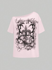 Goth Y2K Grunge Subculture Punk Spring/Summer Faded Vintage Ivy Print Loose T-Shirt Top For Women
