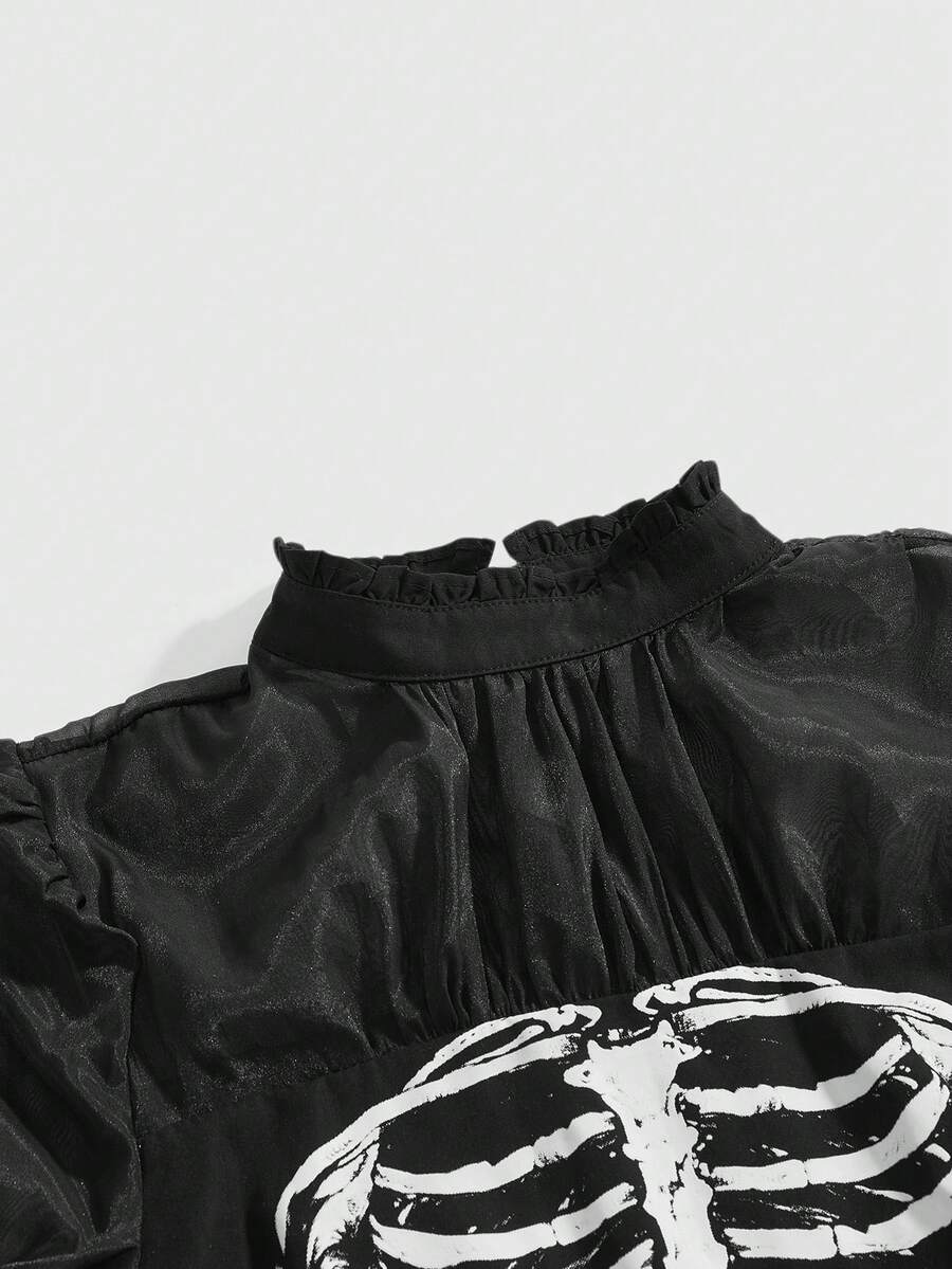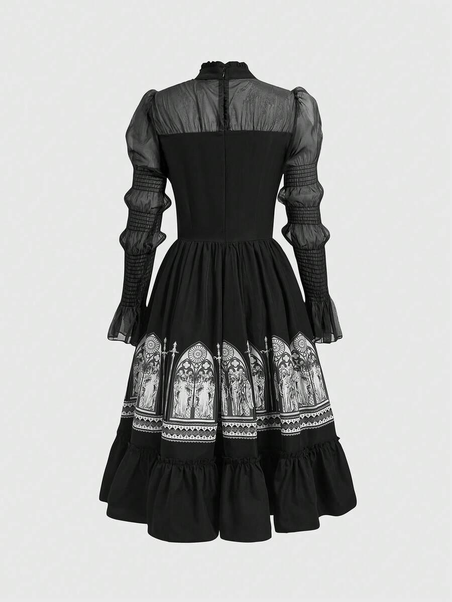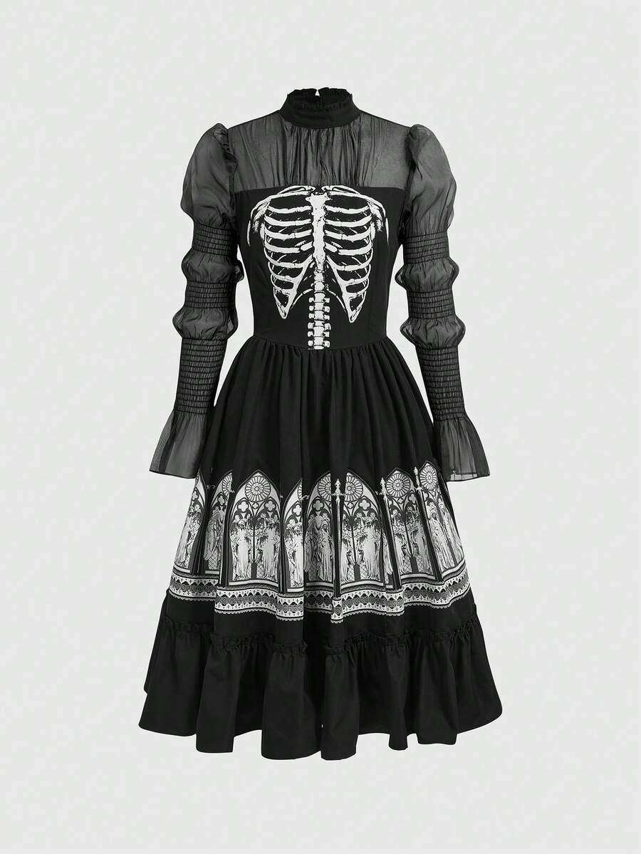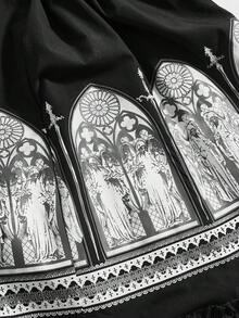 Gothic Dark Skull Skeleton Church Medieval Stone Print A-Line Midi Dress For Women