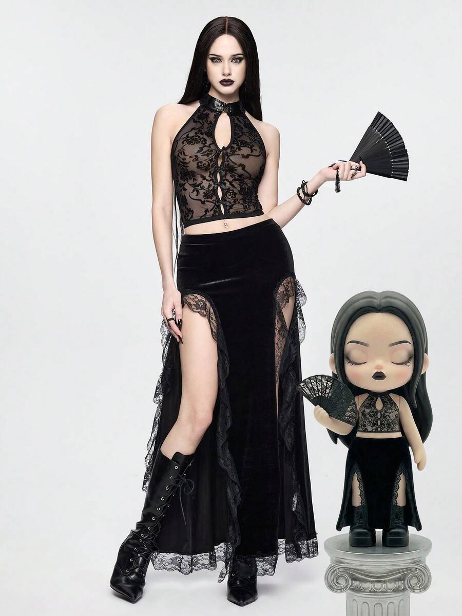 Gothic Floral Flocked Mandarin Collar Fitted Vest