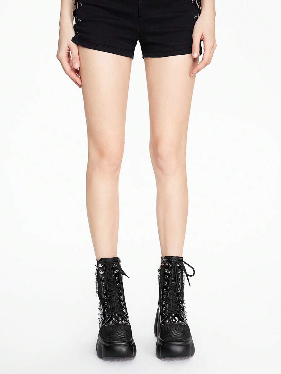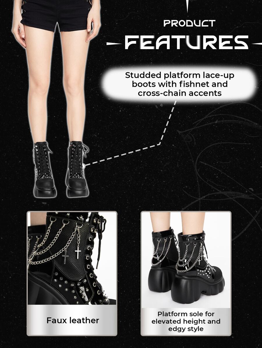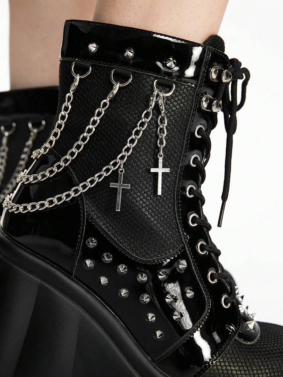 Grunge Punk Gothic Punk Chain Studded Chunky Heel Ankle Boots For Halloween Fall For Christmas And New Year Holiday Valentines Spring Shoes