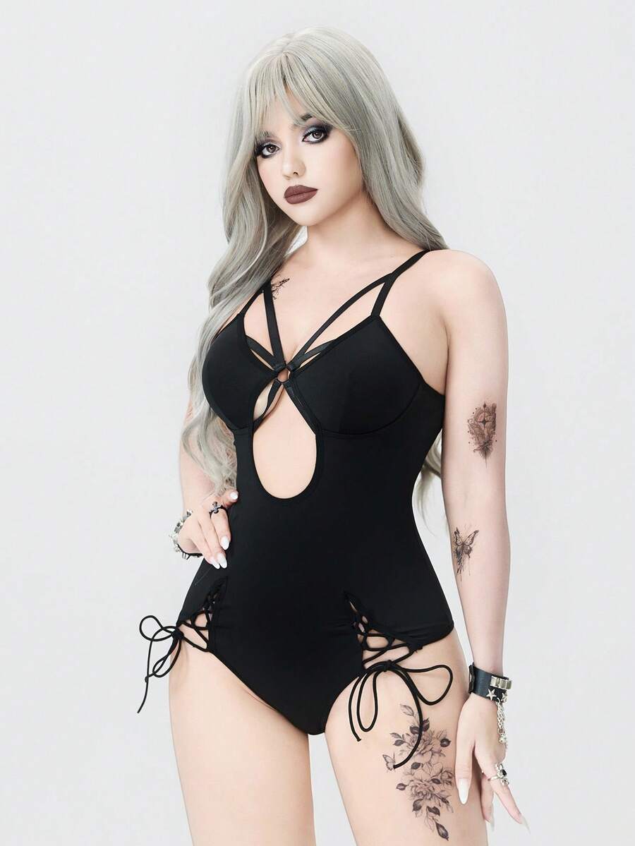 Gothic Punk Rock Lace-Up Sexy Bodysuit For Women
