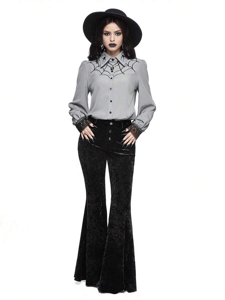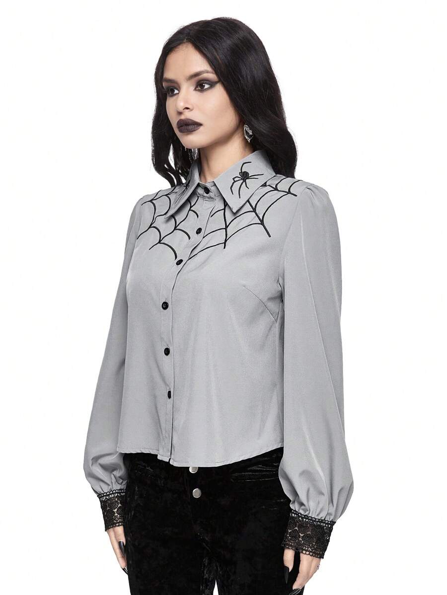 Gothic Spiderweb Embroidered Women's Blouse, Can Be Worn As Inner Layer