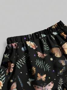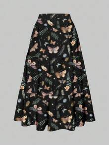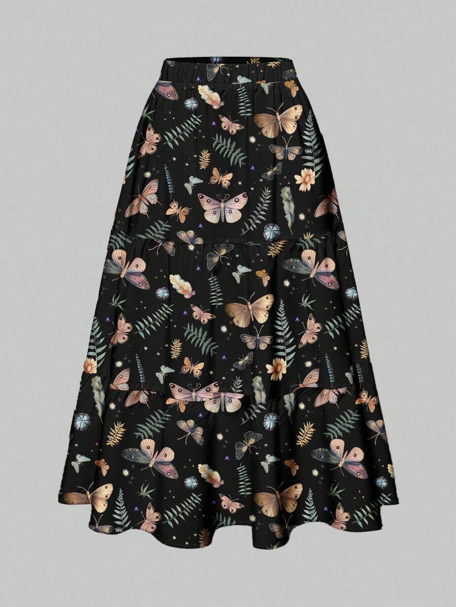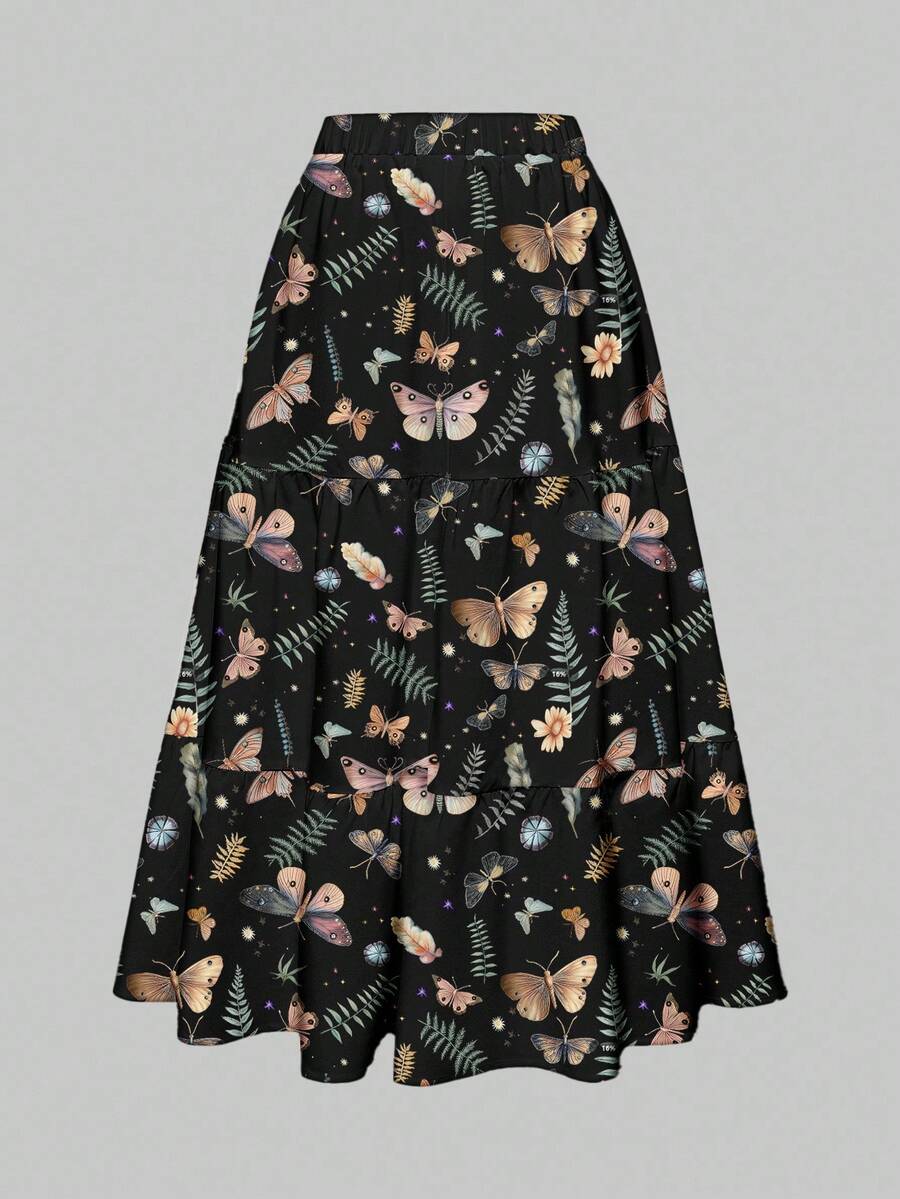 Gothic Style Floral, Butterfly, Starry Pattern Allover Print 3-Layer Women Skirt