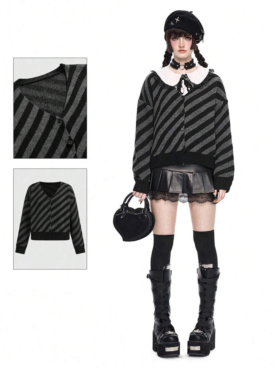 Gothic Style Striped Cardigan For Women
