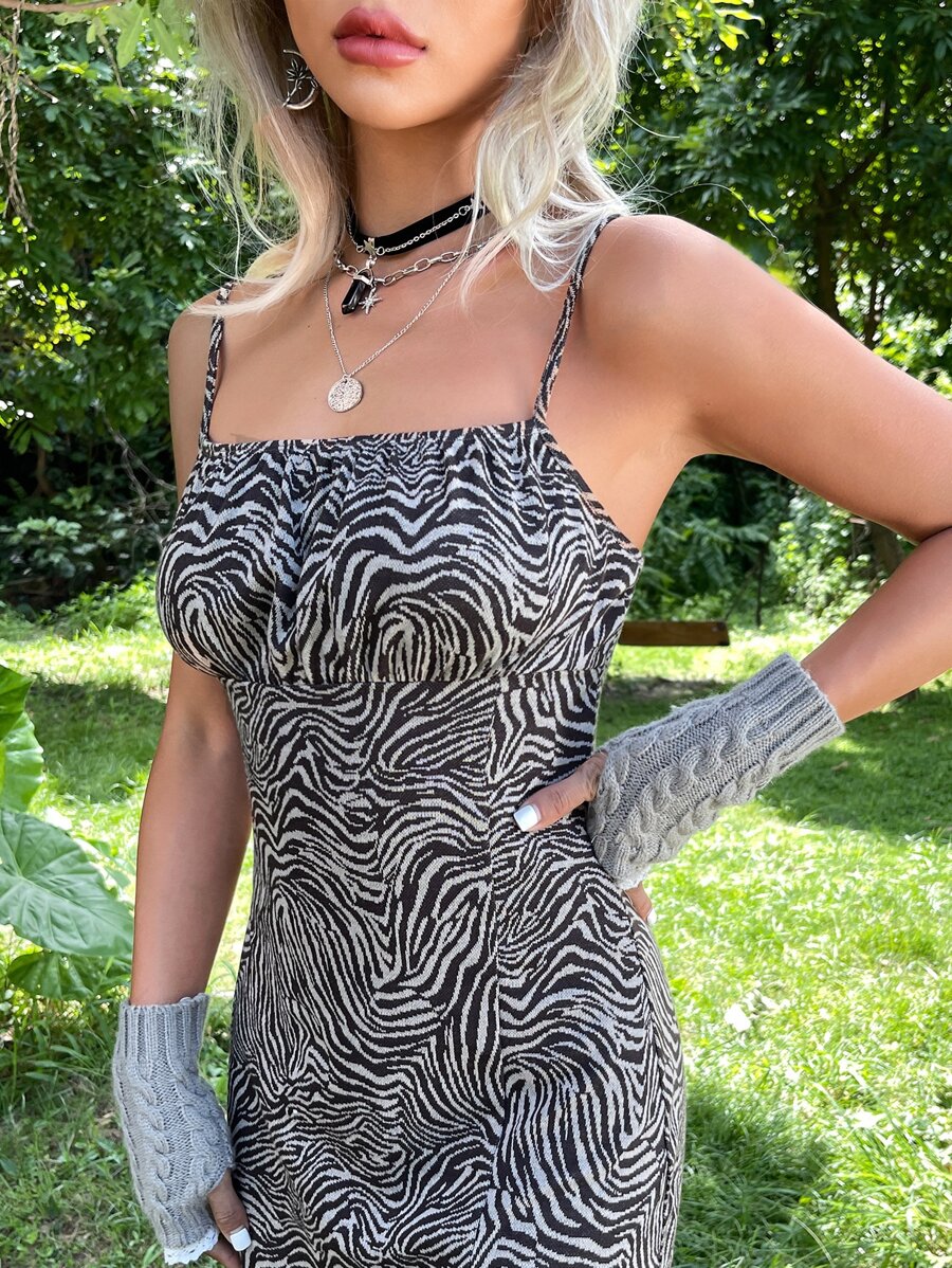 Grunge Allover Print Knot Front Split Thigh Cami Dress