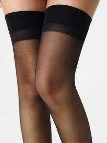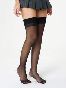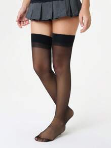 Grunge Punk 1 Pair Black Wide Ribbed Over-The-Knee Stockings