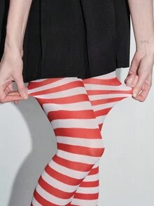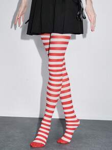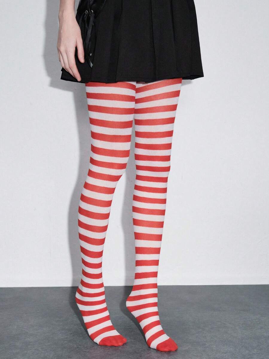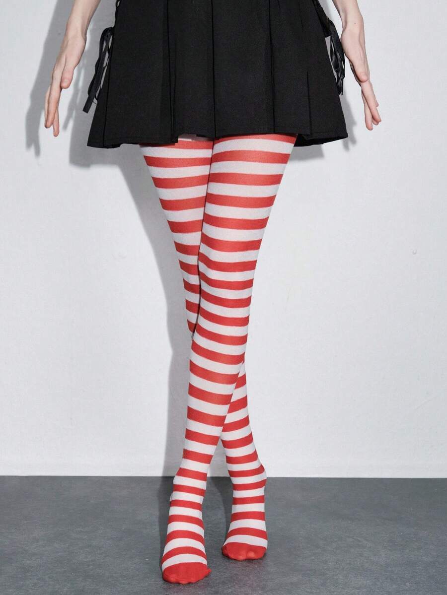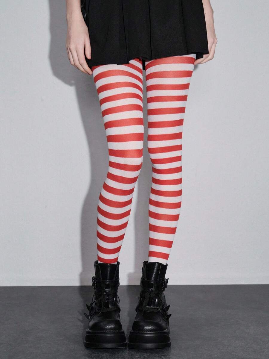 Grunge Punk 1 Pair Dark Rock Style Red & White Striped Tights