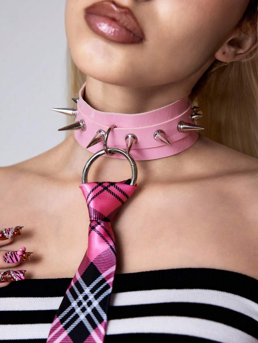 Grunge Punk 1 Pc Women's Gothic Punk Studded Necktie, Subcultural Fashion Accessory