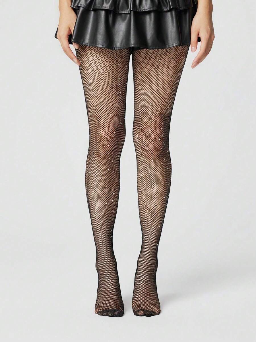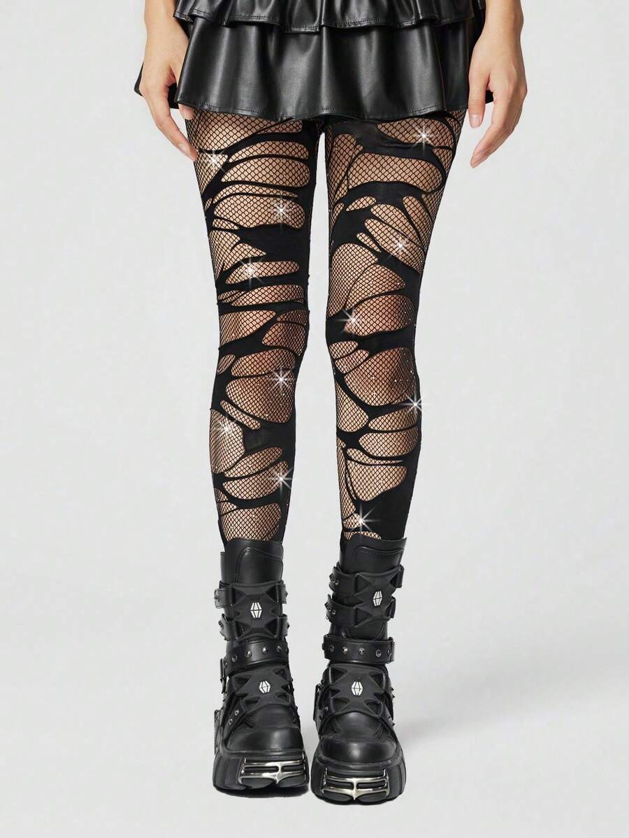 Grunge Punk 1 Set: 1 Pair Minimalist Y2K Dark Aesthetic Fishnet Tights With Holes + 1 Pair Simple Y2K Black Fishnet Socks, Versatile Hosiery Suitable For Daily Wear, Parties And Clubbing