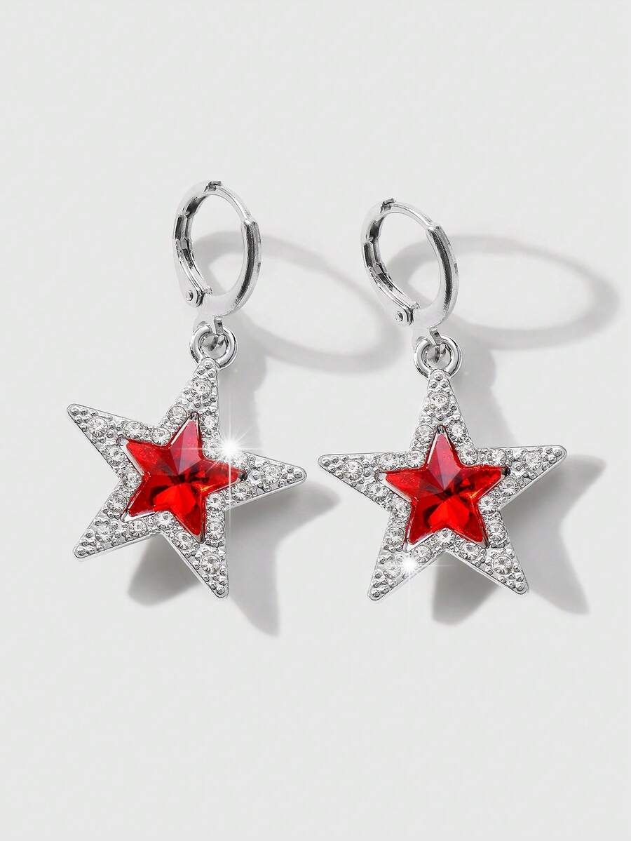 Grunge Punk 1pair Fashion Zinc Alloy Rhinestone Star Drop Earrings For Women For Dating Gift