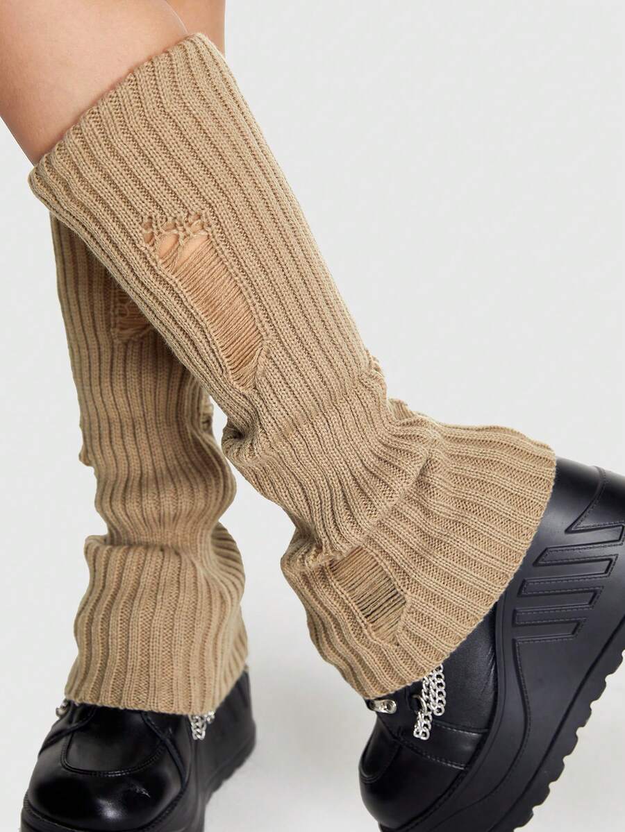 Grunge Punk 1pair Knitted Ripped Leg Warmers