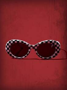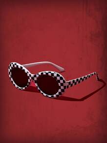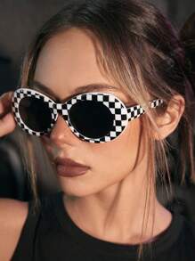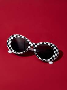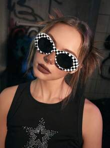 Grunge Punk 1pair Women Checkered Print Frame Fashionable Fashion Glasses, For Decoration