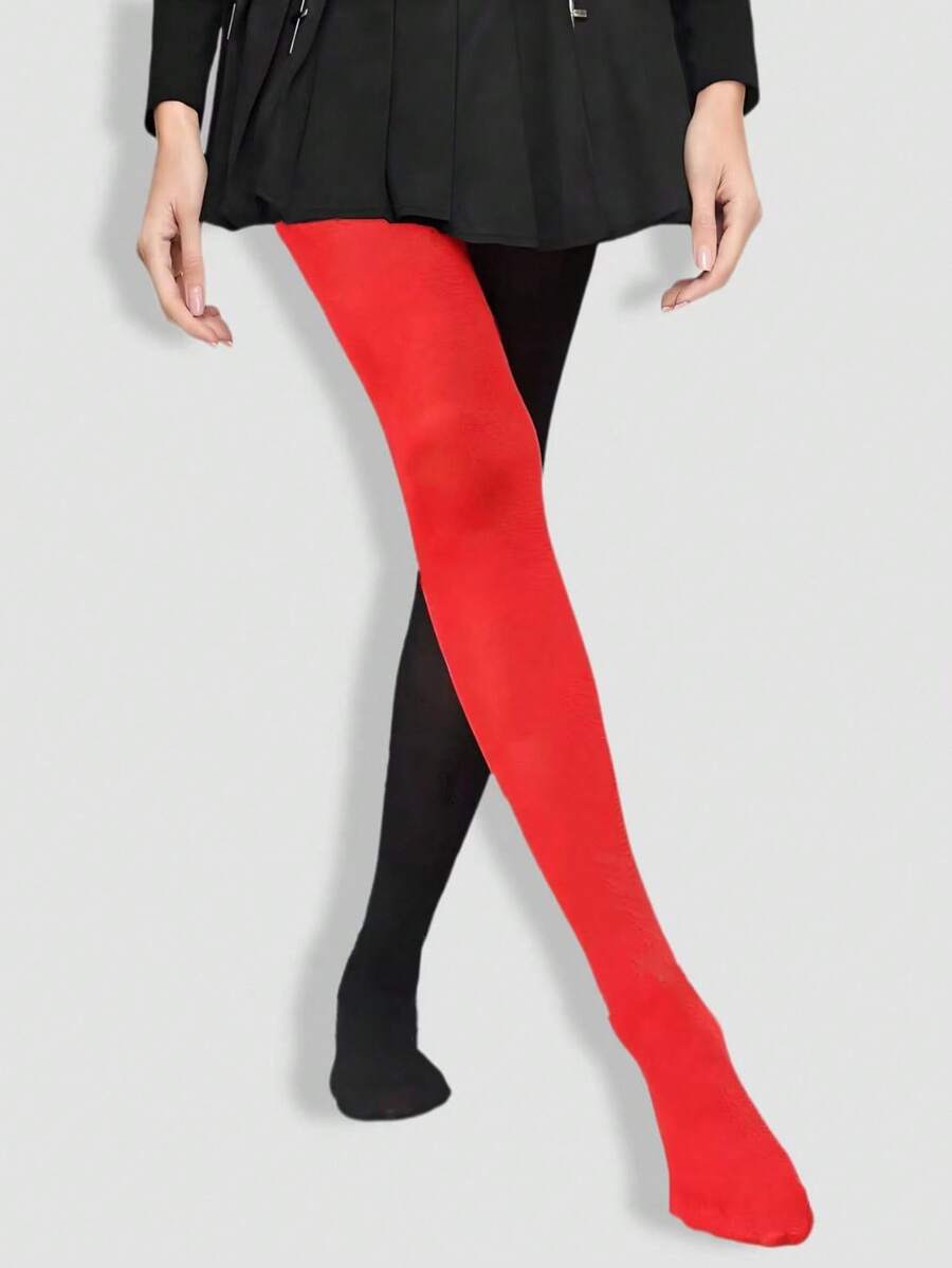 Grunge Punk 1pc Asymmetric Black & Red Sexy Lady Sheer Tights/Pantyhose/Leggings