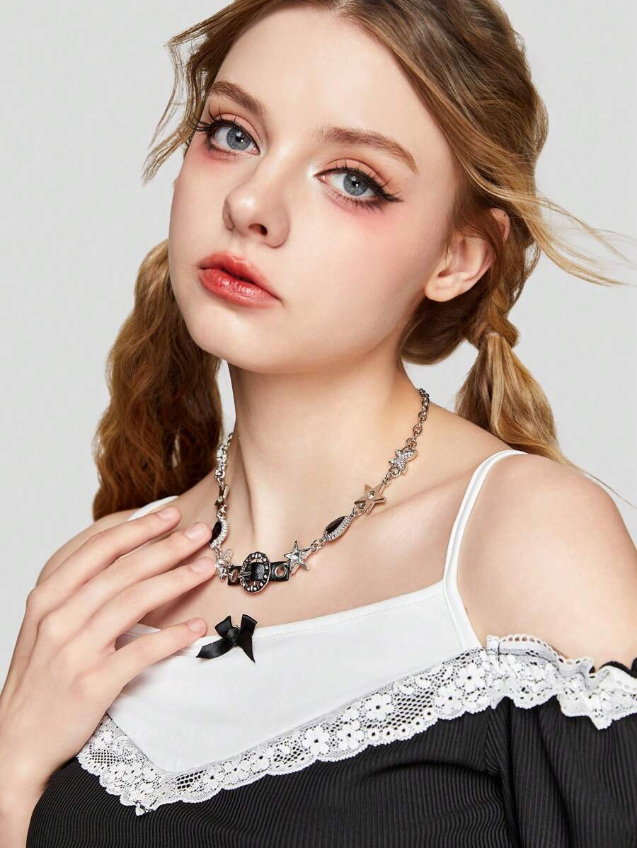 Grunge Punk 1pc Butterfly & Heart Shaped Pendant Necklace