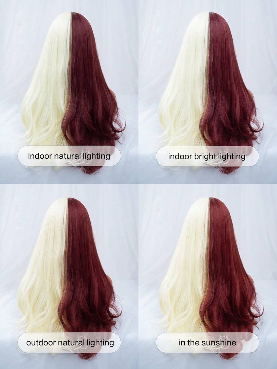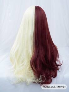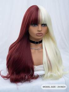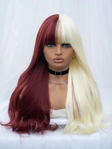 Grunge Punk 1pc Red & White Long Straight Synthetic Wig With Bangs
