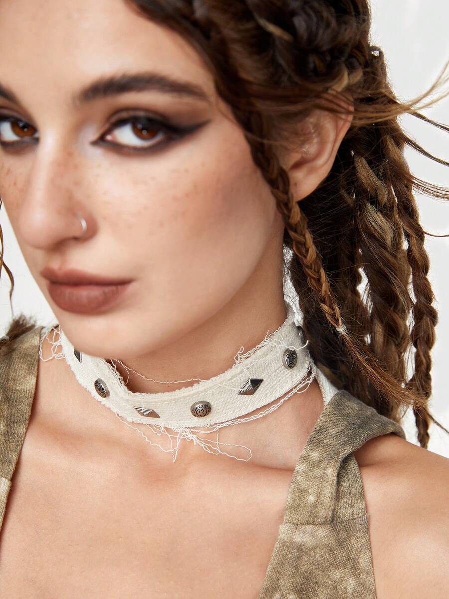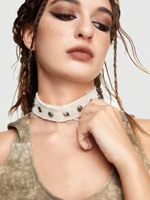 Grunge Punk 1pc Studded Decor Collar Necklace For Women, (millennial Wasteland Style)