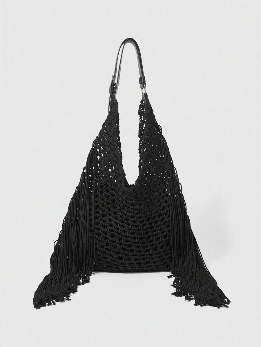 Grunge Punk 1pc Women's Handmade Woven Tassel Shoulder Bag