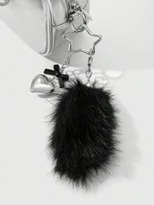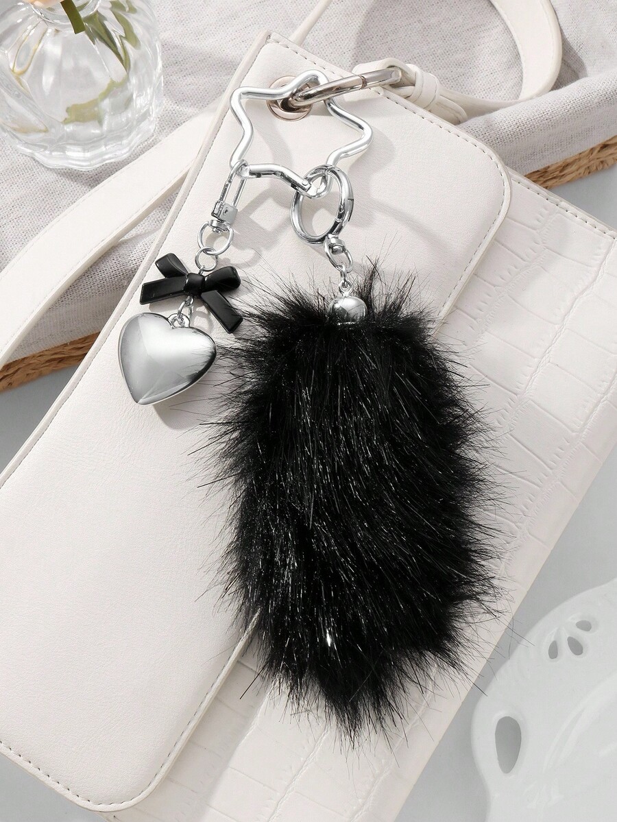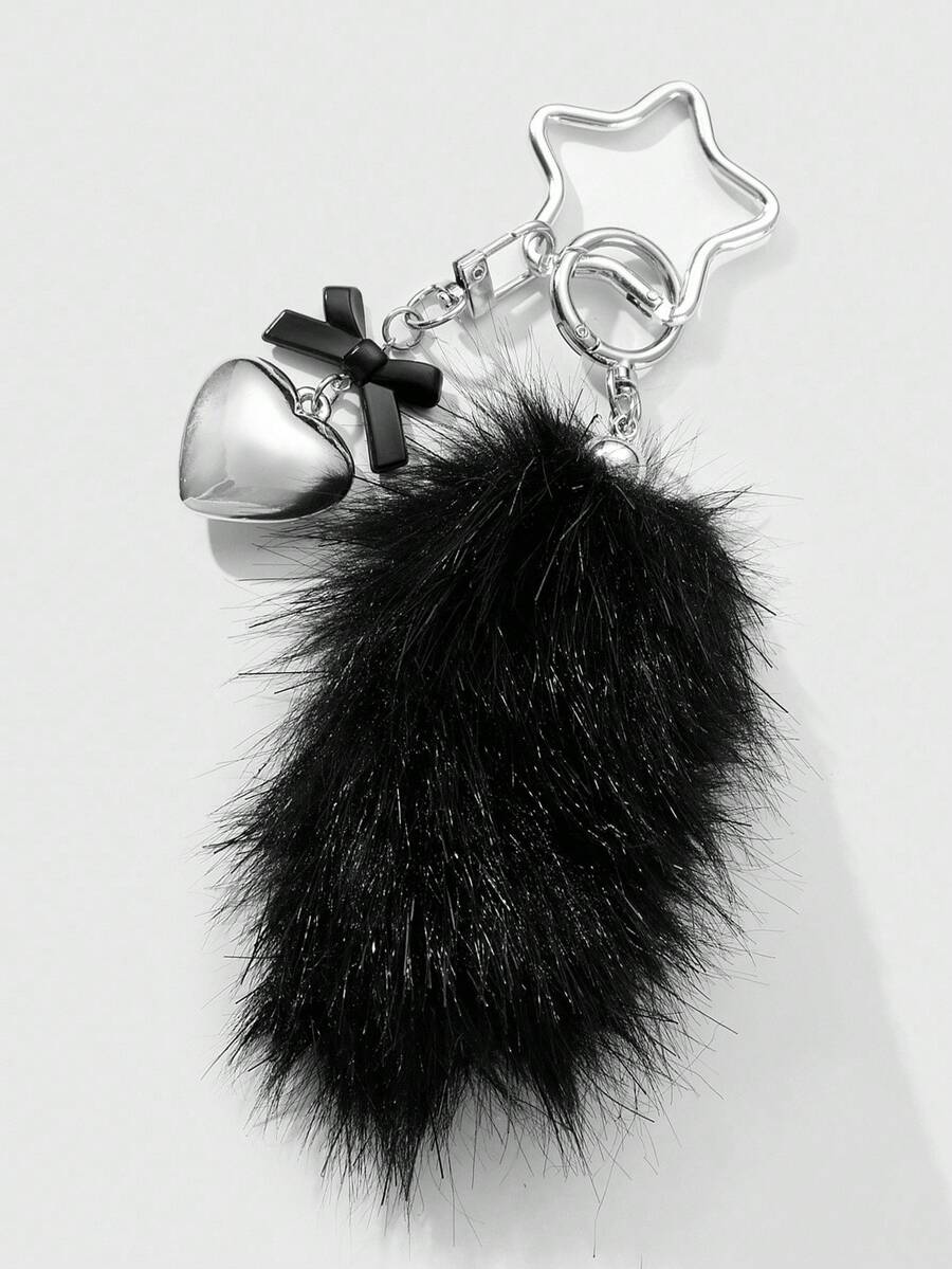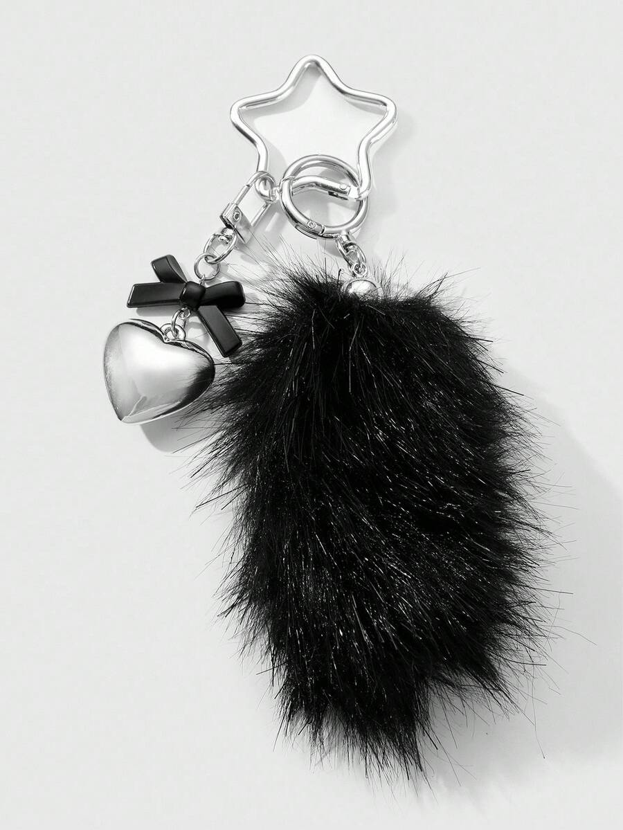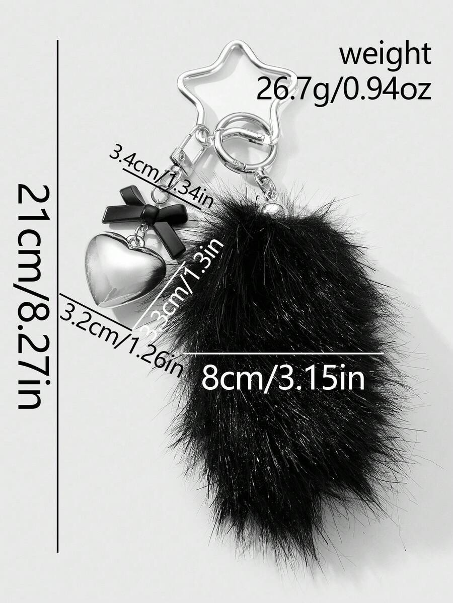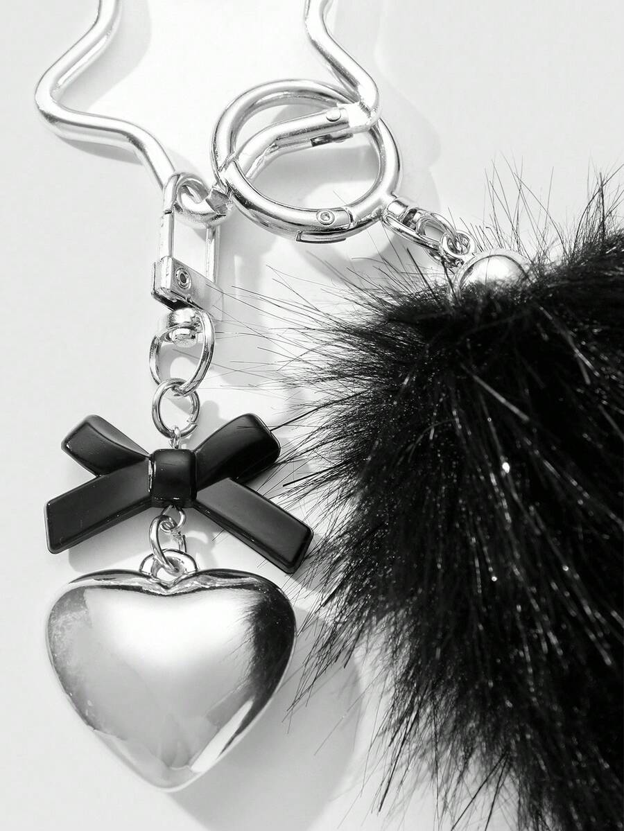 Grunge Punk 1pc Y2K Retro Cute Personalized Goth Style Acrylic Bow, CCB Heart, Black Fluffy Animal Tail, Star Keychain Bag Charm, Suitable For Women, Girls, Daily Wear, Holiday Gift