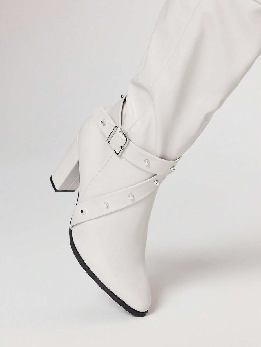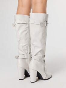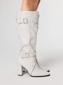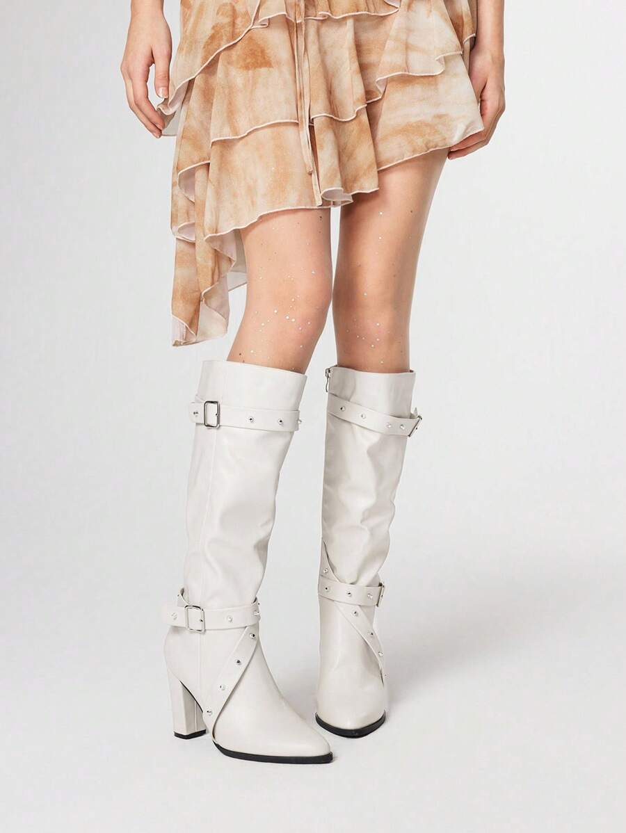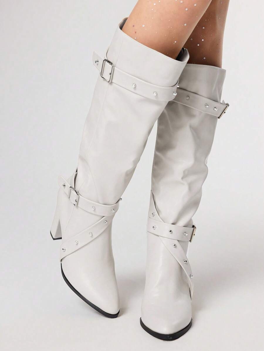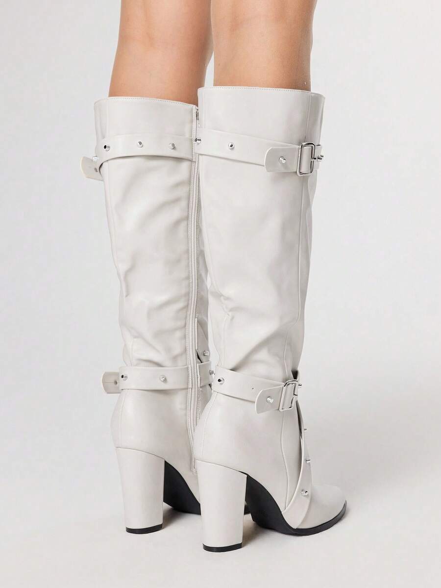 Grunge Punk 2025 New Chunky Heel Pointed Toe Thigh High Boots For Women, Buckle Strap Non-Slip Versatile Riding Boots