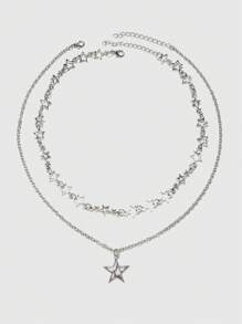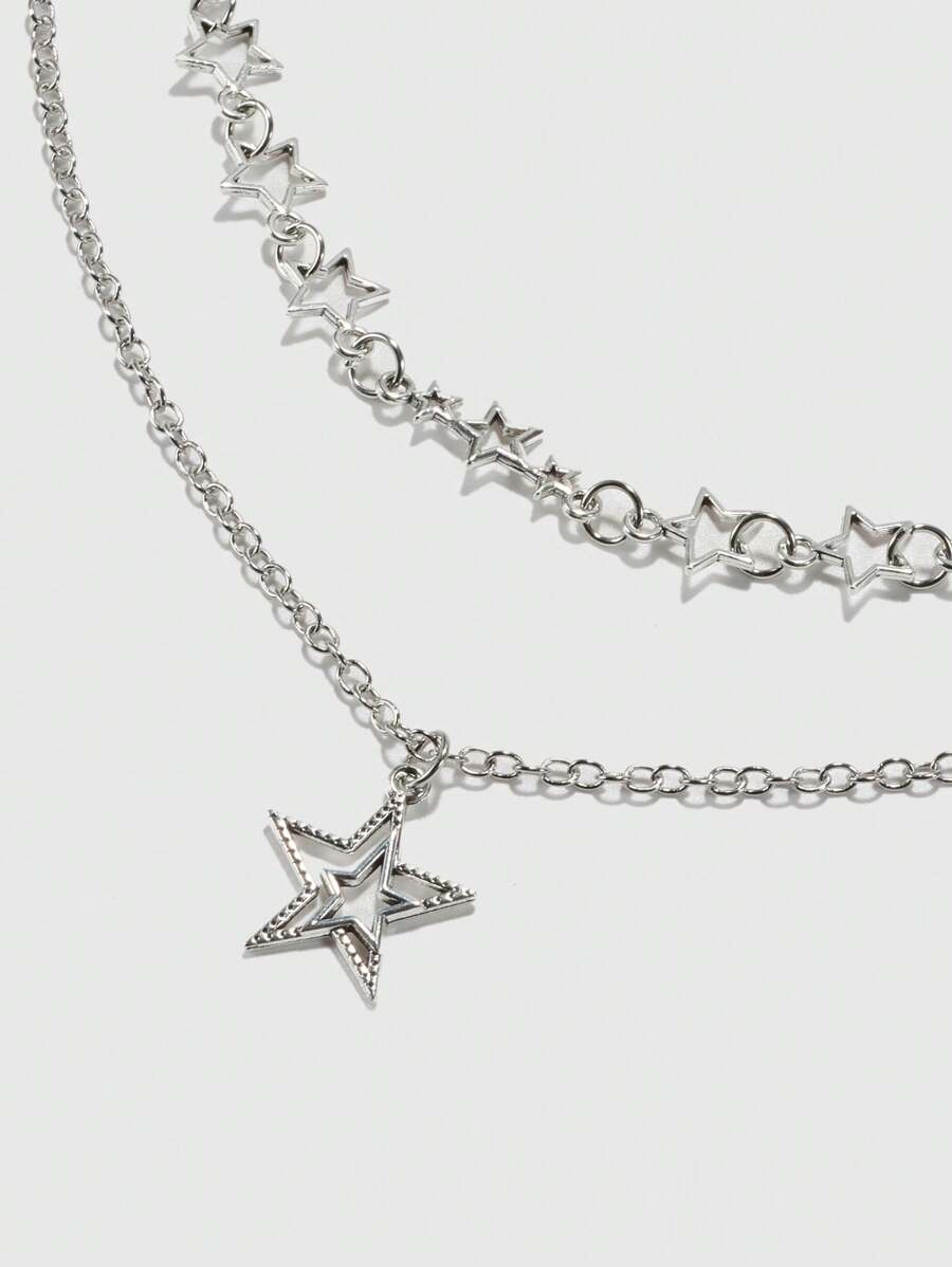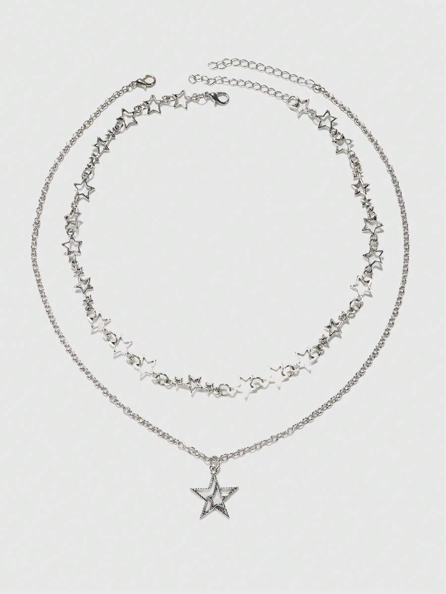 Grunge Punk 2pcs/pack Y2k Punk Style Star Shaped Alloy Necklace For Women